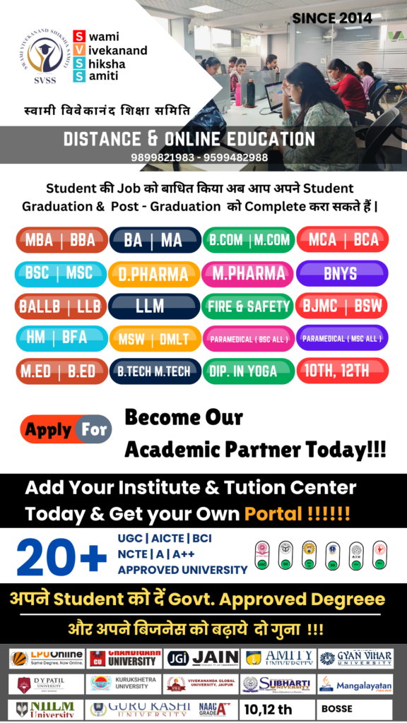 फ्रेंचाइजी प्राप्त करके, आप अपने संस्थान को हमारे प्रतिष्ठित पोर्टल से जोड़ सकते हैं और अपने छात्रों को ग्रेजुएशन और पोस्ट-ग्रेजुएशन की शिक्षा प्रदान करने का सशक्त माध्यम बना सकते हैं। हम आपको वेब सर्विसेज, फ्री काउंसलिंग, और आपके बिजनेस के SEO मॉडल का समर्थन प्रदान करेंगे ताकि आप अपने व्यवसाय को नई ऊंचाइयों पर ले जा सकें।